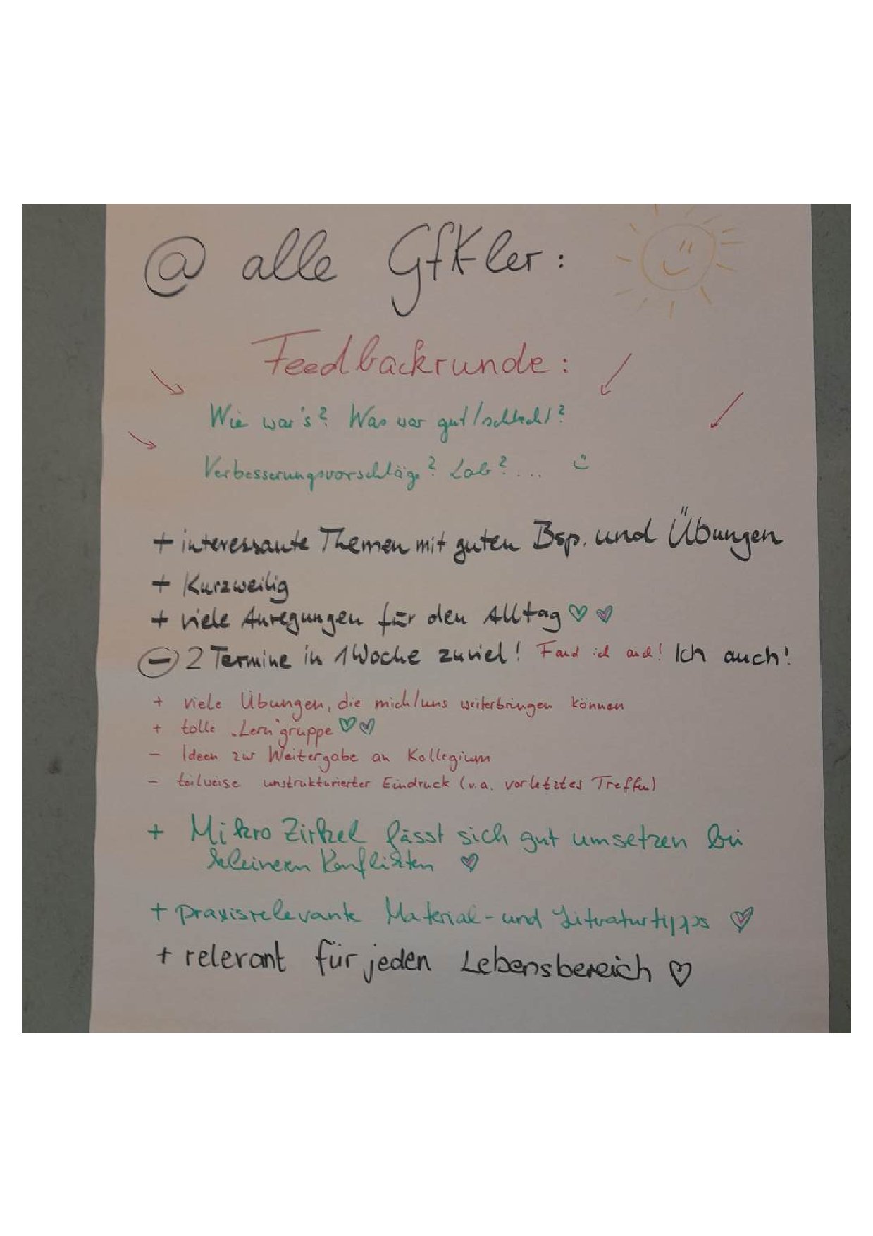 Feedback Grundschule am Lehrer-Götz-Weg (siehe Foto Flipchart)
